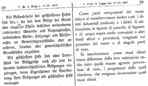 Bäuerliches Gemeinschaftseigentum ist jedenfalls gemäß GALG § 24 Bestandteil eines geschlossenen Hofs und als Miteigentumsverhältnis nach GALG § 9 (3) zu verbüchern. Es gab zwei Möglichkeiten, Miteigentum mit Quoten in § 34 (4) und den Ausnahmefall gemäß aGG § 10, Gemeinschaftseigentum ohne Quoten in § 34 (6). Die Miteigentümer wurden nicht namentlich angeführt, sondern unter der Einlagezahl der bestimmt anzuführenden geschlossenen Höfe intabuliert. Das ist eine „conditio sine qua non“. Fehlen diese Angaben, dann liegt von Gesetz wegen kein bäuerliches Gemeinschaftseigentum vor.