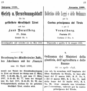 Mit Gesetz vom 25. Juli 1871 wurde vom Reichsrat der k.k. Monarchie die Einführung eines allgemeinen Grundbuchsgesetzes beschlossen. Dies war ein grundlegender Schritt für die Modernisierung der Verwaltung des Reiches. Grundlegend für die Rechtssicherheit und für die Bürgernähe. Es entstand damit für alle Länder des Reichsgebietes ein „Hauptverzeichnis für Grund und Boden und aller damit verbundenen Rechte“. Die Länder wurden durch das Gesetz beauftragt, eigene Grundbuchsanlegung-Landesgesetze und Durchführungsverordnungen zu beschließen.
